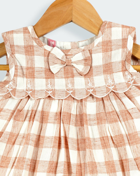 Checked A- line frock with embroidery ( Casual frock)