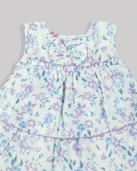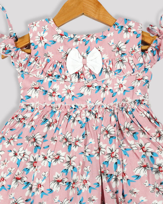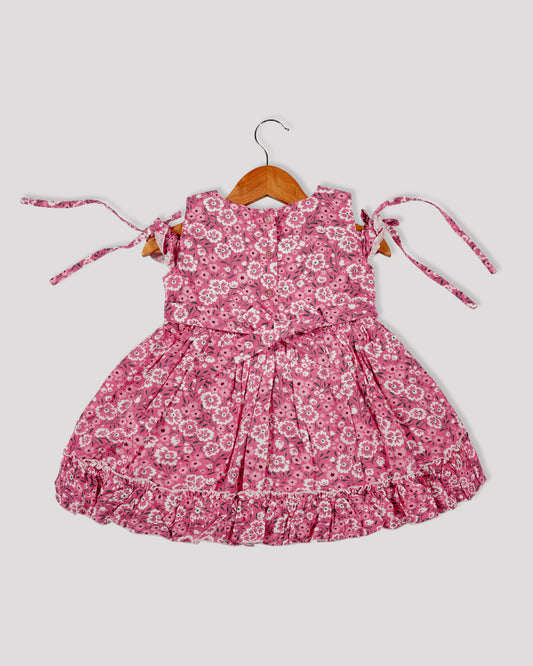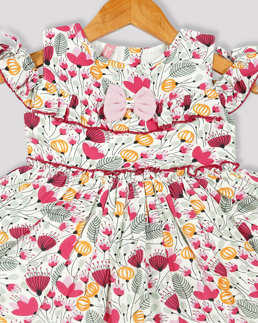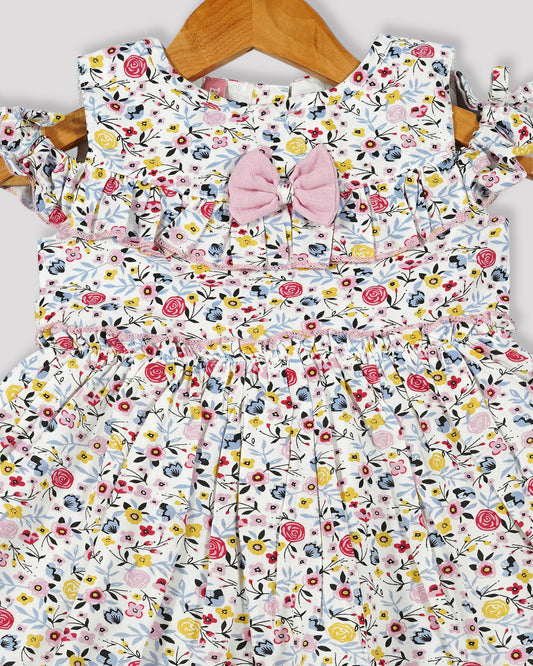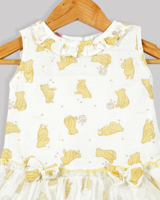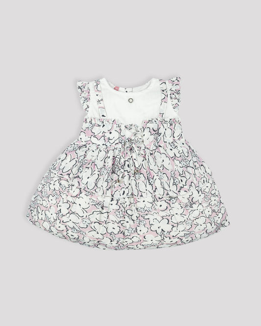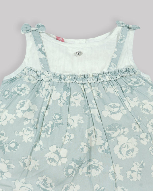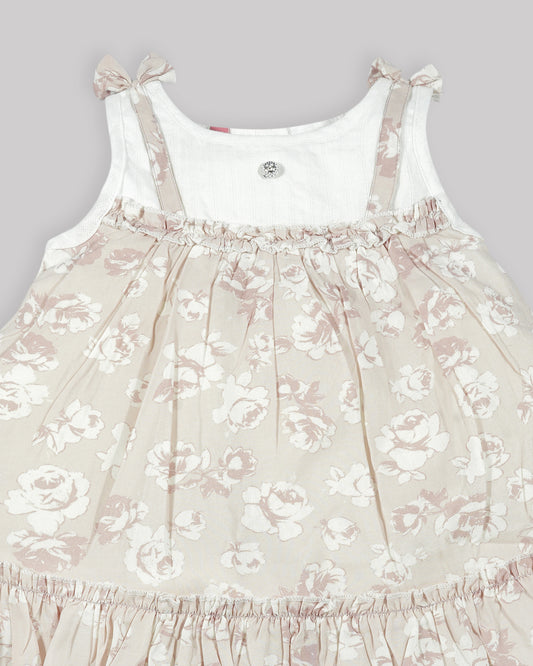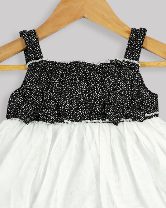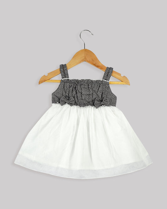 Casual printed frock Gathered yoke with plain net bottom