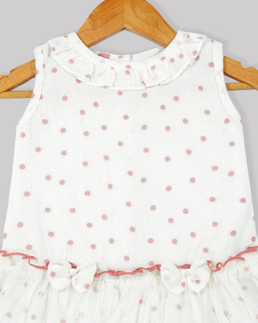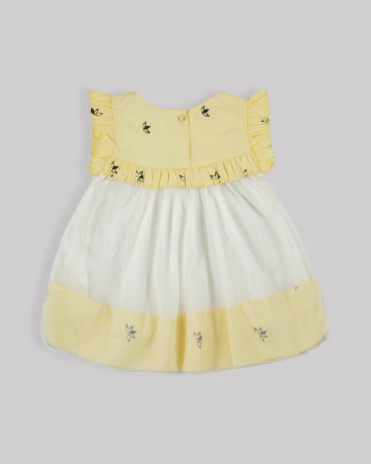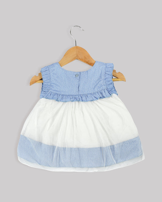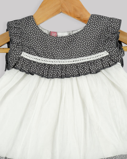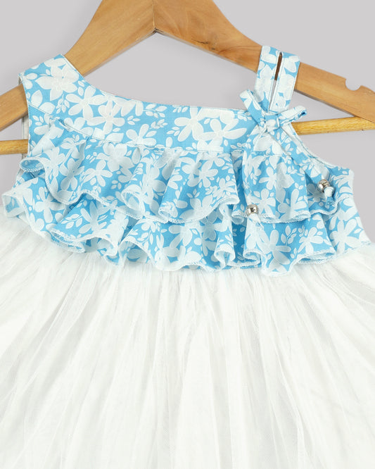 Casual printed frock Frilled yoke with plain net gathered bottom