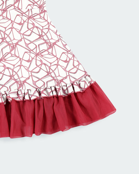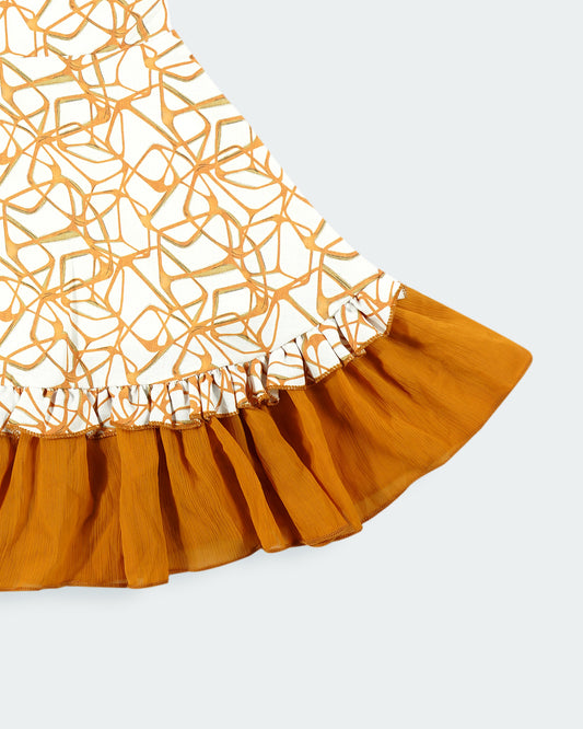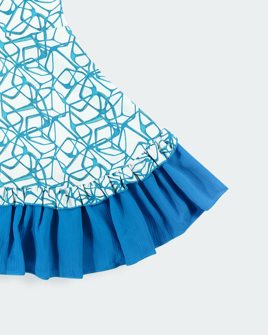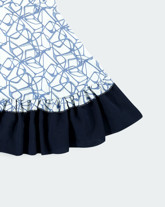 Printed fit and flare casual frock (sleeveless) Fabric : Gentle man